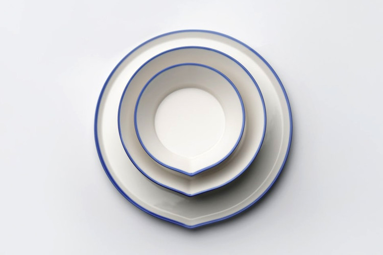 단순하면서도 개성 있는 물방울 형태는 어떠한 음식과도 조화롭게 어울리며, 다양한 테이블 세팅에 자연스럽게 스며듭니다. 정형적인 원형에서 벗어난 비정형의 쉐입은 식탁 위에 은은한 움직임과 리듬감을 선사하여, 일상적인 식사 시간을 특별한 경험으로 변화시킵니다. 특히, 염료가 스며들어 자연스럽게 번지듯 표현된 파란 라인은 백색의 도자기와 대비를 이루어 시각적인 즐거움을 더하고, 식탁위에 조용하지만 분명한 아름다움을 선사합니다.